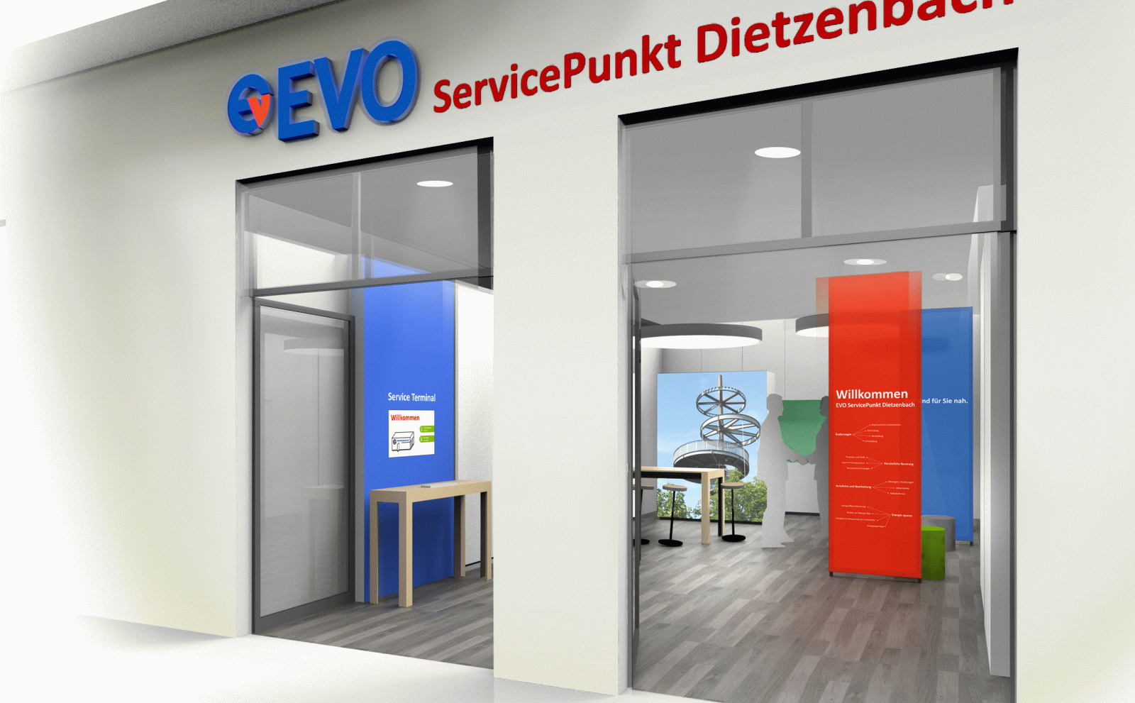 Die Energieversorgung Offenbach AG (EVO) versorgt Offenbach am Main und sein Umland mit Gas, Strom und Fernwärme. Kunden und Interessenten können sich in mehreren ServicePunkten über die Angebote informieren, unter anderem im Rathaus-Center Dietzenbach. unit-design gestaltet dort die Customer Experience mit einer klaren Raumgliederung, schneller Orientierung und vielfältigen Informationsmedien.