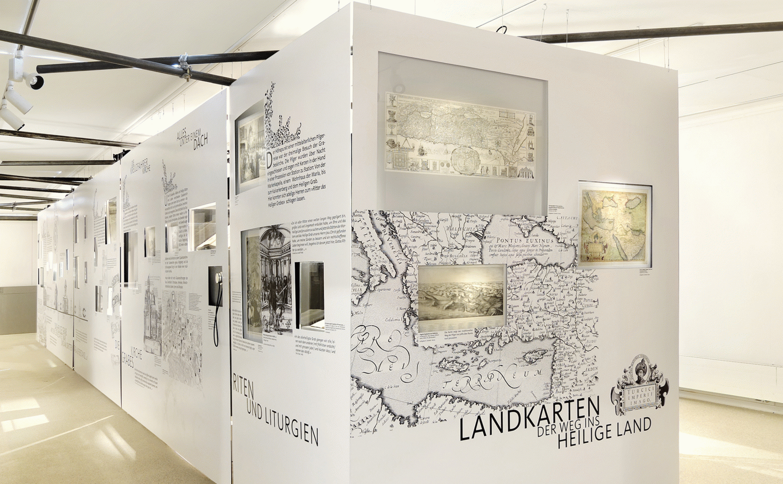 Der Ausstellungsteil im Untergeschoss erzählt anhand von zahlreichen, zum Teil einzigartigen historischen Exponaten die Geschichte der «Heiligen Gräber» und weiterer Ansätze, Jerusalem in Europa erlebbar zu machen.