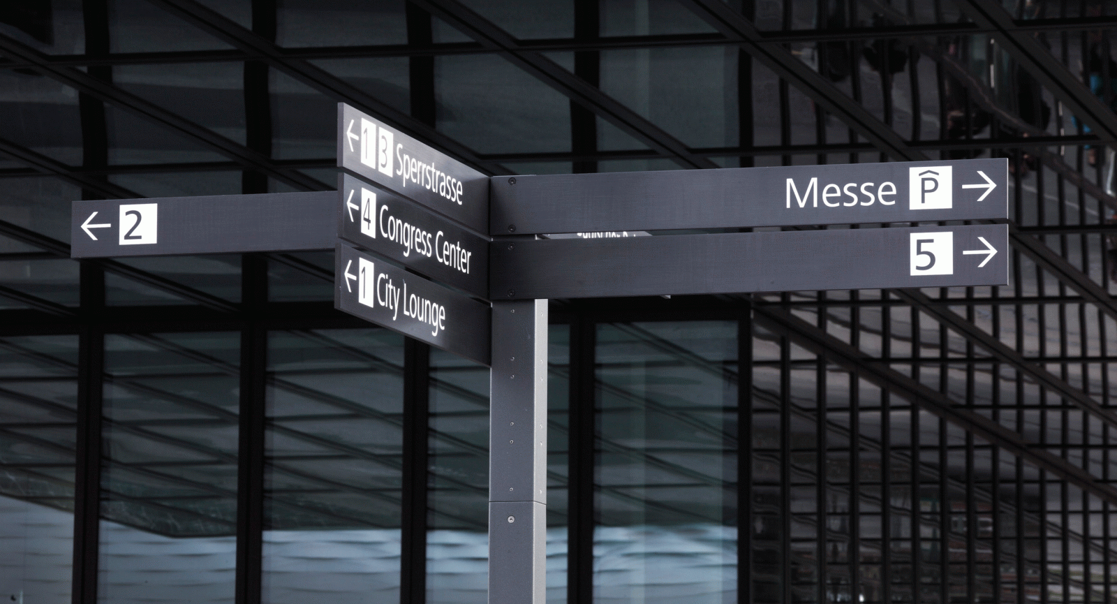 Mit dem Bau der Halle 1 von Herzog & de Meuron erweitert die Messe Basel (MCH Group) ihre Ausstellungsfläche auf insgesamt 140.000 Quadratmeter. Das von unit-design für die Messe gestaltete Leit- und Informationssystem verbindet den Neubau mit den vorhandenen Hallen und verleiht ihnen ein einheitliches, prägnantes Erscheinungsbild.