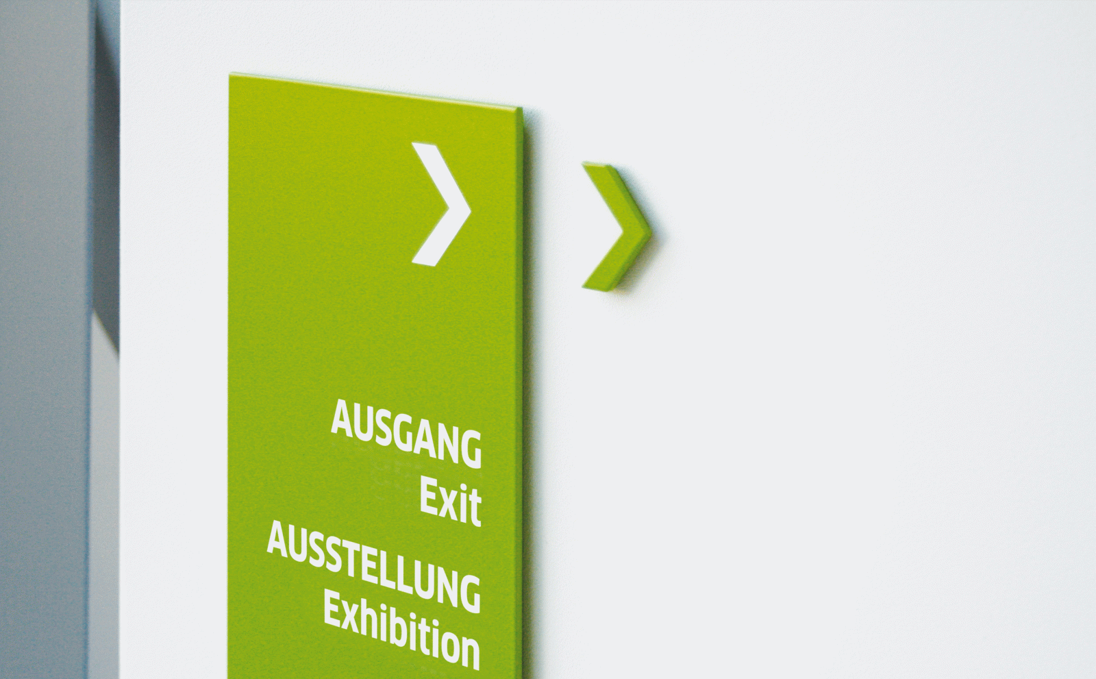 Bezeichnungen in der Landessprache und auf deutsch stehen grafisch positiv und invertiert nebeneinander.