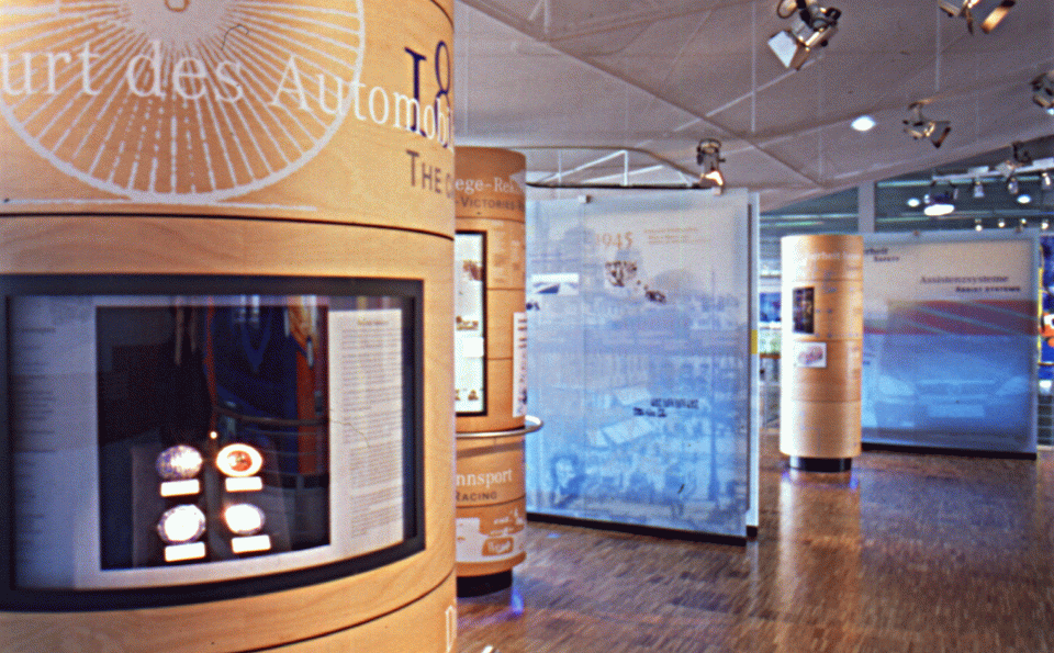 Ein multimediales Werksmodell visualisiert mit LED-Strecken und Leuchtkästen die Produktionsabläufe. An Terminals können Filme abgerufen werden, die die Produktionsschritte erläutern. An den Hörstelen berichten Mitarbeiter von ihrer Arbeit.