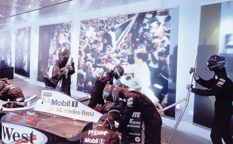 Die Ausstellungsthemen informieren über die grosse Tradition von Mercedes-Benz, geben interessante Einblicke in die Produktionsabläufe und werfen einen Blick in die Zukunft – mit neuen Materialien und Antrieben sowie innovativen Mobilitätskonzepten.