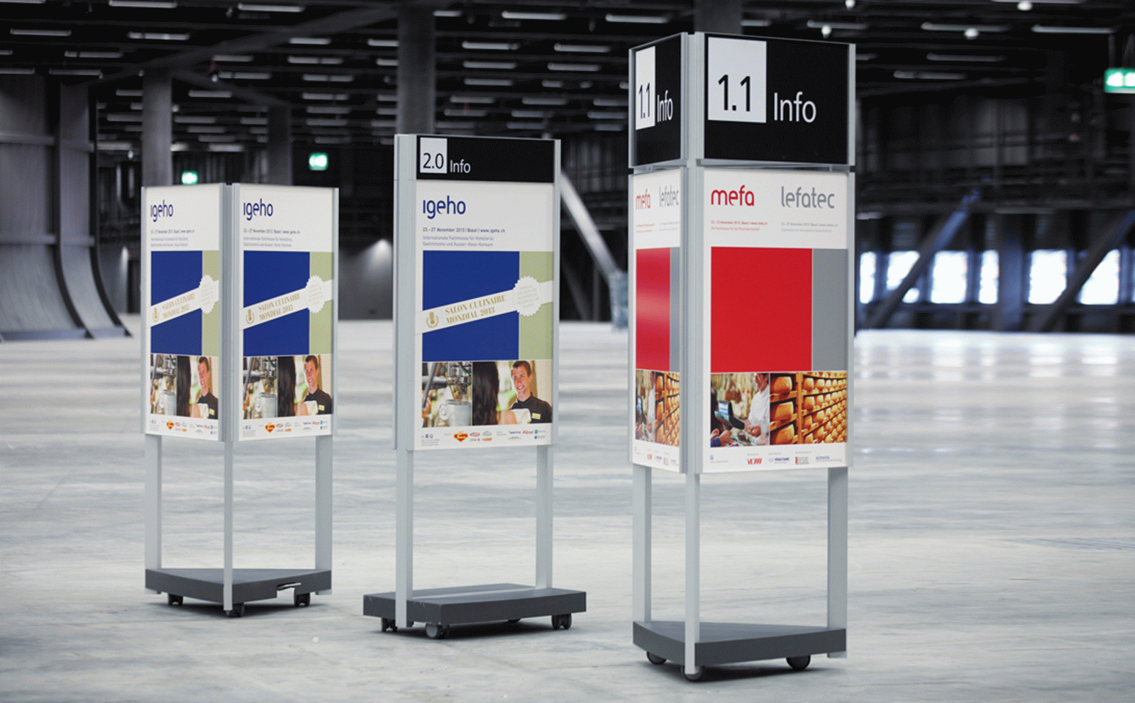 Für die Messe Basel (MCH Group) entwickelt unit-design ein Produktsystem, das sich durch seinen hohen praktischen Nutzen, seine auf Langlebigkeit zielende Bauweise sowie clevere Detaillösungen für Austausch und Erweiterbarkeit der Schildelemente auszeichnet.