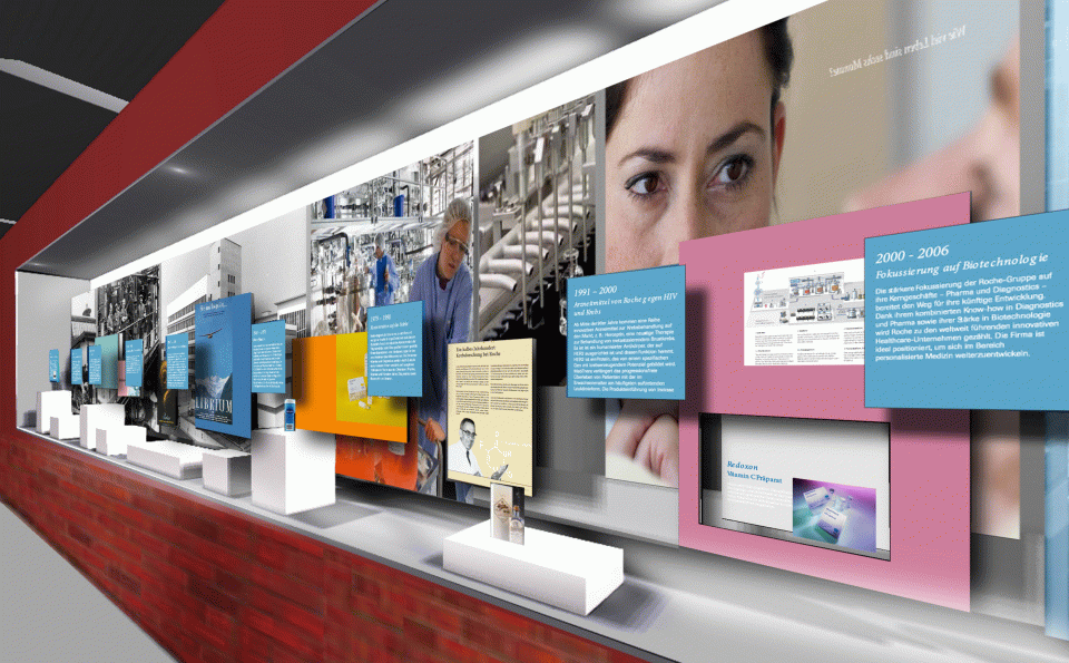 Im Rahmen des Gesamtumbaus des Roche Gebäudes «Bau 683» in Basel hat unit-design den Auftrag, für das Foyer eine Ausstellung zur historischen Entwicklung des Pharmakonzerns zu konzipieren.