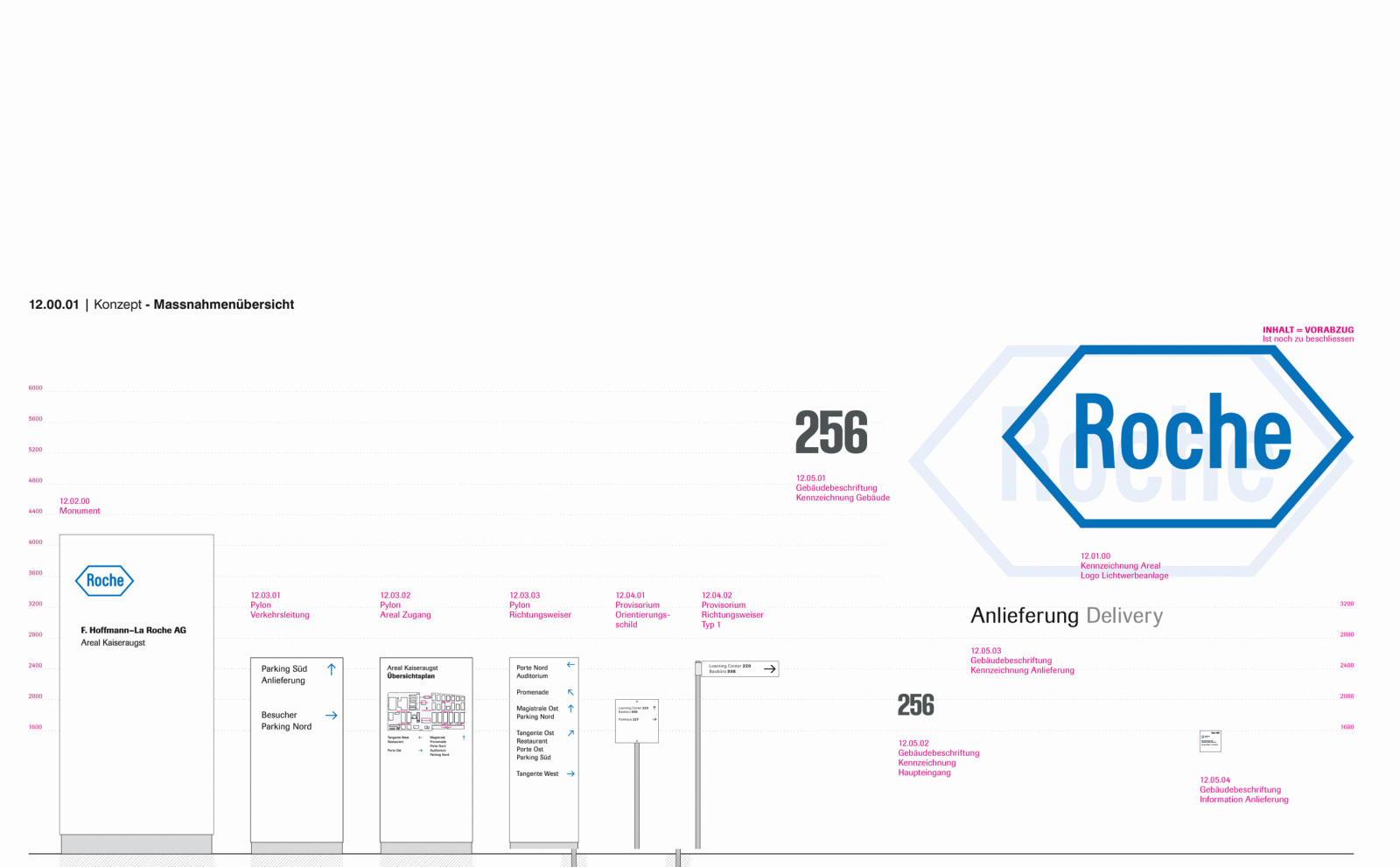 Roche hat in den letzten Jahren den Ostteil des Firmenareals in Kaiseraugst ausgebaut. Um eine reibungslose Funktion des Standortes zu gewährleisten, wurde das Thema Orientierung und Wegeleitung in das Masterplan-Projekt integriert.