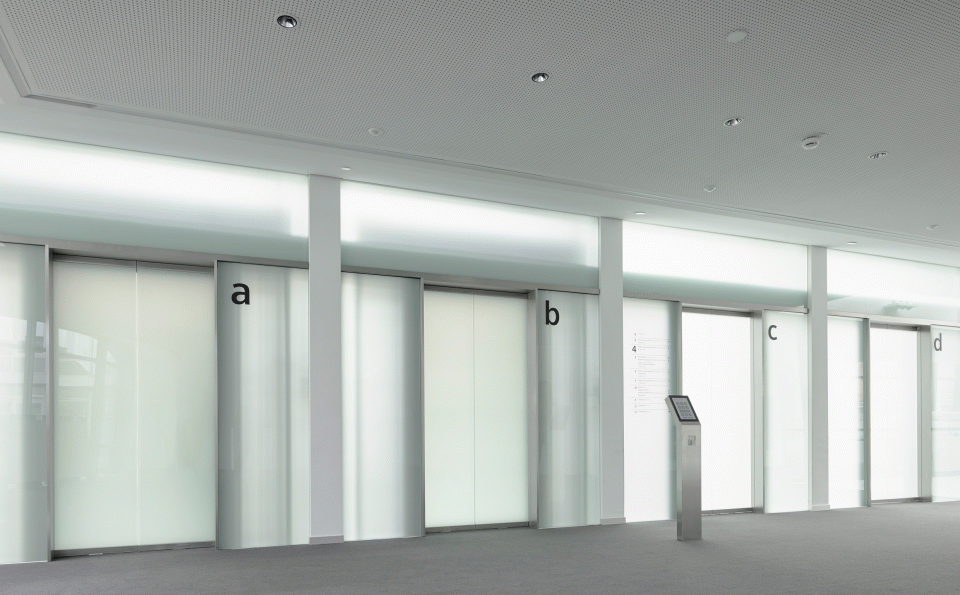 Die Offenheit und Transparenz der Architektur spiegelt sich auch in den Leitsystemmassnahmen wider. Die Basis bildet das von unit-design grundlegend überarbeitete Corporate Signage, das durch direkt auf Wandflächen aufgebrachte Beschilderungen in Form von Schablonierungen, Folien oder 3D-Schriftelemente ergänzt wird.