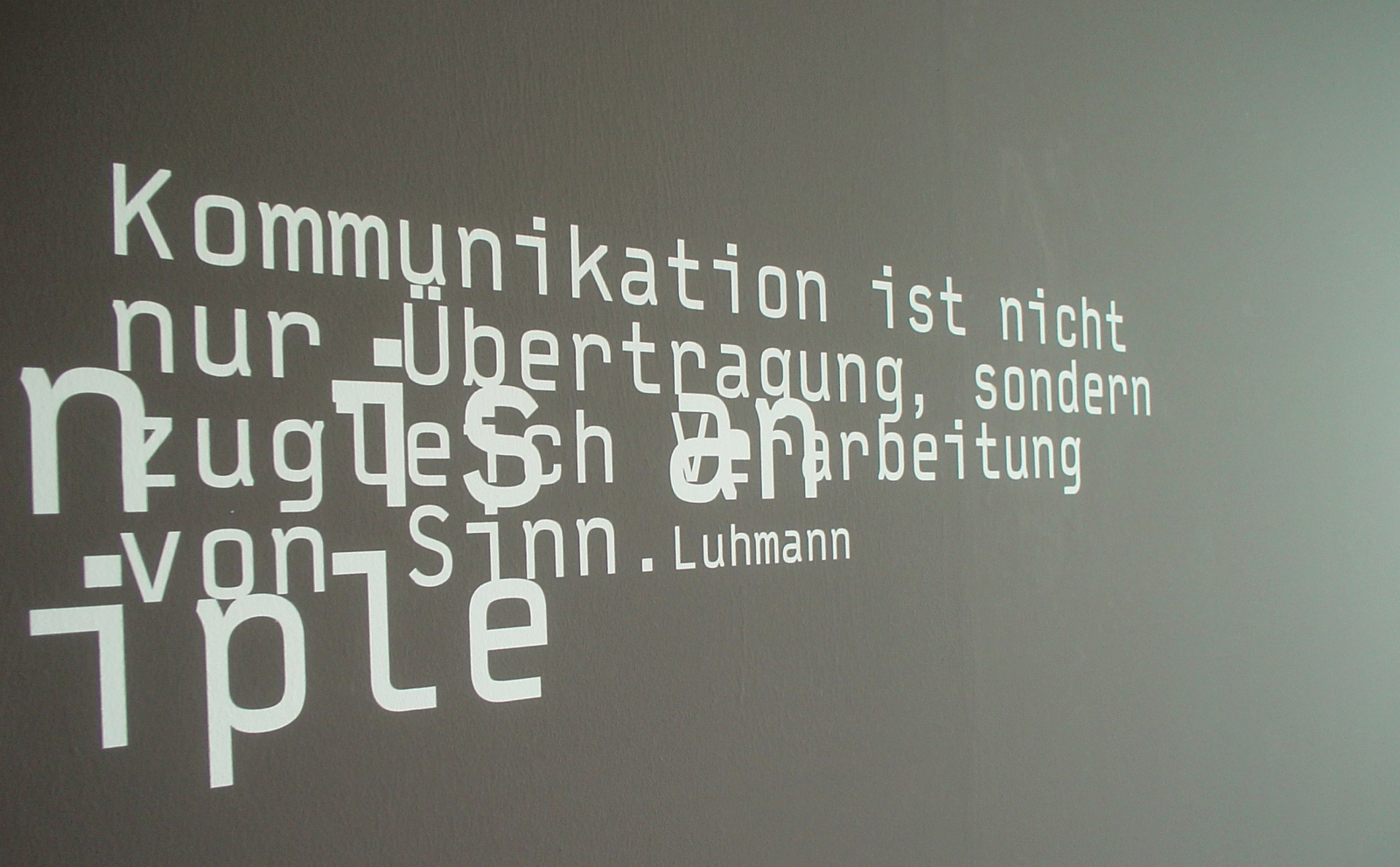 Das T-Mobile Forum ist der öffentliche Bereich des T-Mobile Hauptquartiers in Bonn. Hier befindet sich auch ein Konferenzbereich mit zahlreichen Besprechungsräumen. unit-design gestaltete in diesem Gebäudeteil eine Raumgrafik, die das Thema Kommunikation aufnimmt und Persönlichkeiten zitiert, die sich damit auseinandergesetzt haben. Analog zur der realen Kommunikation entstehen teilweise Überlagerungen, die sich zu typographischen Wolken verdichten.