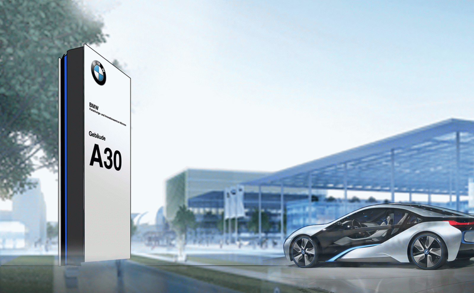BMW's Research and Innovation Centre (FIZ) in Munich is its largest site in terms of space and employees, if the adjacent leased property is included. This makes it something of a center of gravity, drawing in other high-quality jobs related to the automotive world. As part of the process of expanding research and development activities at the FIZ, unit-design was invited to enter a competition to design a signage and guidance system uniting digital and analog systems. unit-design secured second place in the contest.