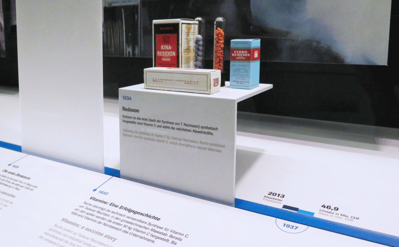As part of the complete renovation of Roche's building 683 in Basel, Switzerland, unit-design was commissioned to design an exhibition outlining the pharmaceutical company's history.
